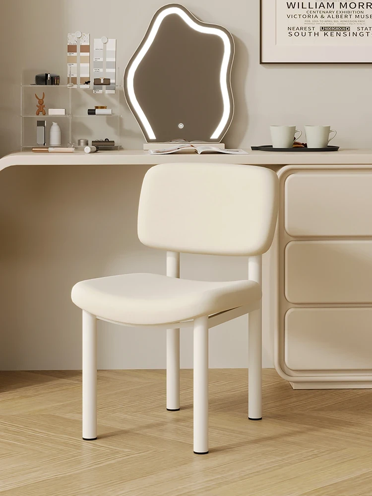 Creamy Luxury Makeup Vanity Stool - Elegant High-End Makeup Chair with Backrest for Girls' Bedrooms, Trendy Nail Art Chair, Versatile Dining Chair