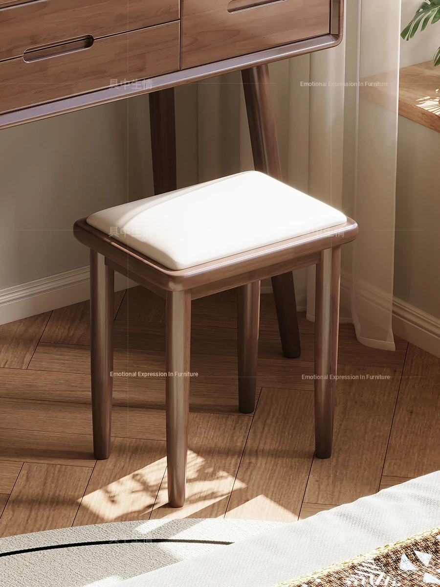 Elegant Solid Wood Makeup Stool - Comfortable Soft-Padded Vanity Chair for Bedroom, Modern Minimalist Design for Women, Perfect for Dressing Up and Beauty Routine.