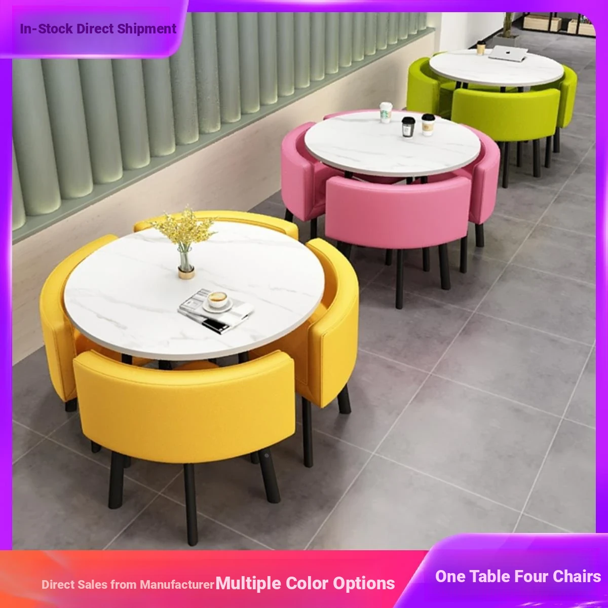 Minimalist Negotiation Meeting Table and Chair Set - Stylish Round Table for Casual Gatherings, Perfect for Tea Shops and Dessert Cafés, Creative Reception Furniture for Modern Spaces.