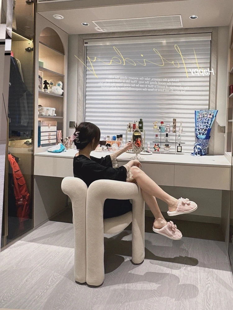 トレンドのメイクアップチェア!おしゃれなクローゼットデザインのクリーム風、シンプルでモダンな家庭用寝室向けのラグジュアリーな新作ドレッシングテーブルスツール。あなたの美しさを引き立てる完璧なアイテム!