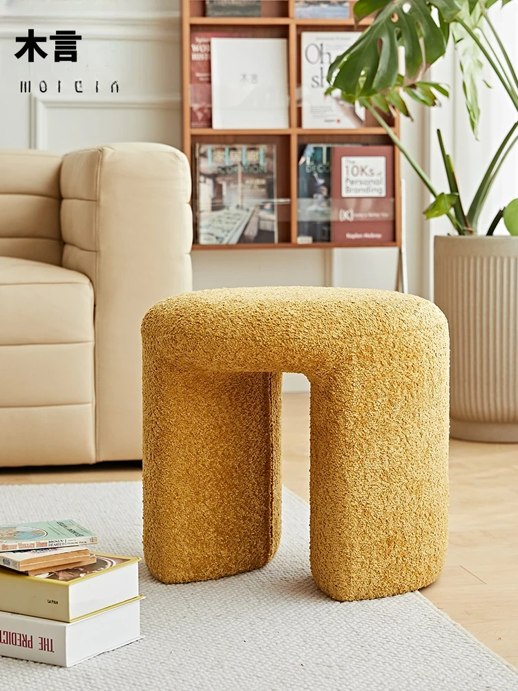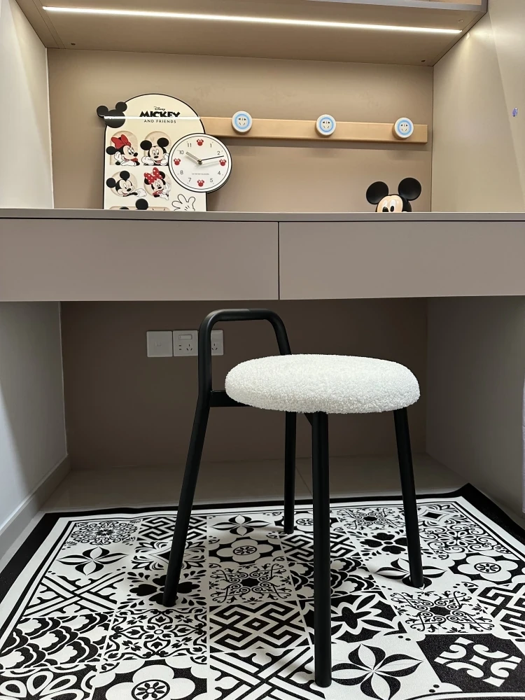 可愛らしい円形雲団ドレッシングスツール - 玄関やリビングにぴったりなモバイルシューズスツール!柔らかいショートウール製で、子供たちも大喜びの楽しいデザイン。おしゃれで実用的な小さな座席をお楽しみください!