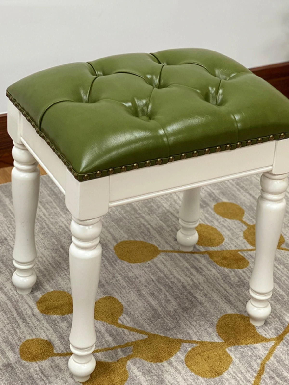 アメリカンスタイルの化粧台椅子 - おしゃれで快適なメイクアップベンチ!高級感あふれる木製とソフトパッドのデザイン、ネイルアートにも最適!自宅でサロンのような贅沢を楽しめます。