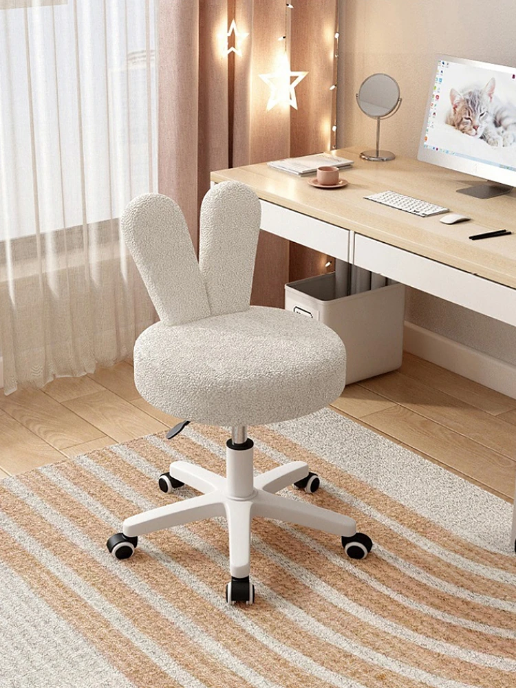 高級感溢れる化粧椅子|移動可能な昇降式|可愛いウサギの耳デザインのクリーム風化粧台|あなたのお部屋にぴったりのスタイリッシュなインテリアアイテム!