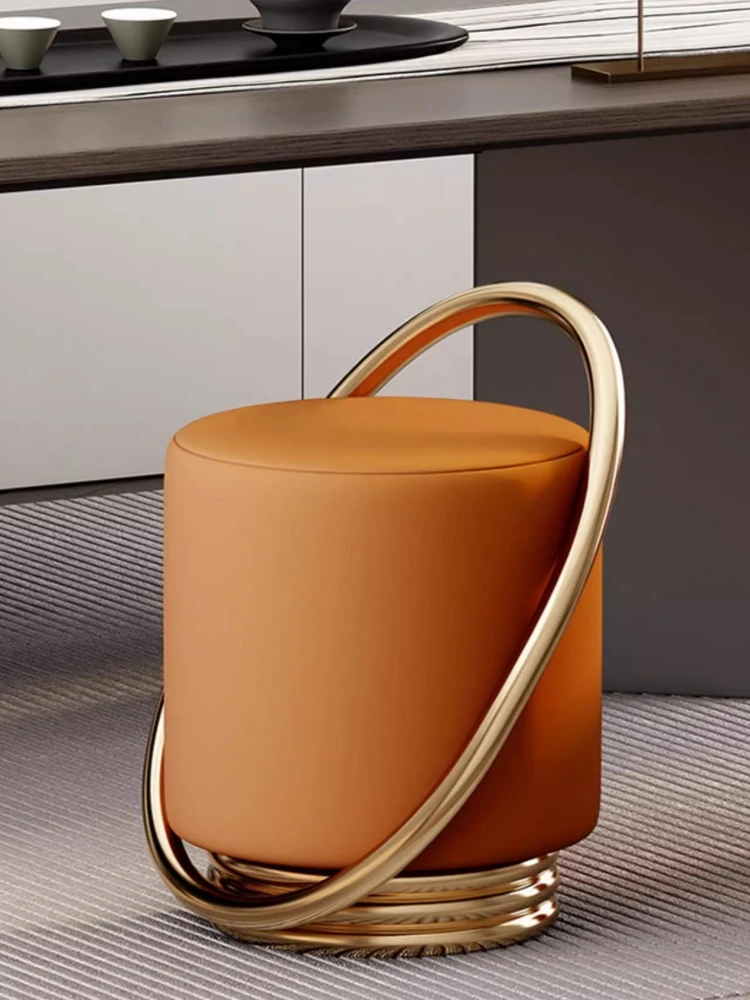 主寝室用のラグジュアリー化粧椅子 - 高級感あふれる中高円形スツールで、美しいメイクアップをサポートします。快適な座り心地とスタイリッシュなデザインで、あなたの寝室を引き立てます。