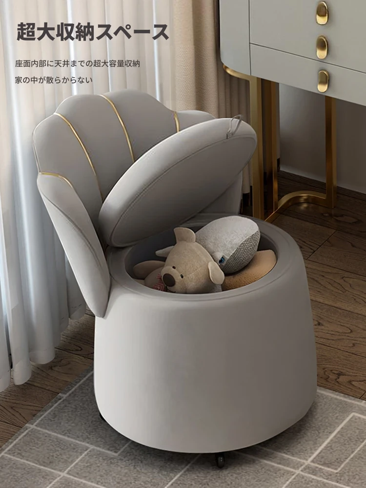 2025年新作!収納力抜群の化粧台用スツール - リラックスできる背もたれ付き、寝室やメイクアップスペースに最適。スタイリッシュなデザインで、あなたの美の時間をより特別に演出します!