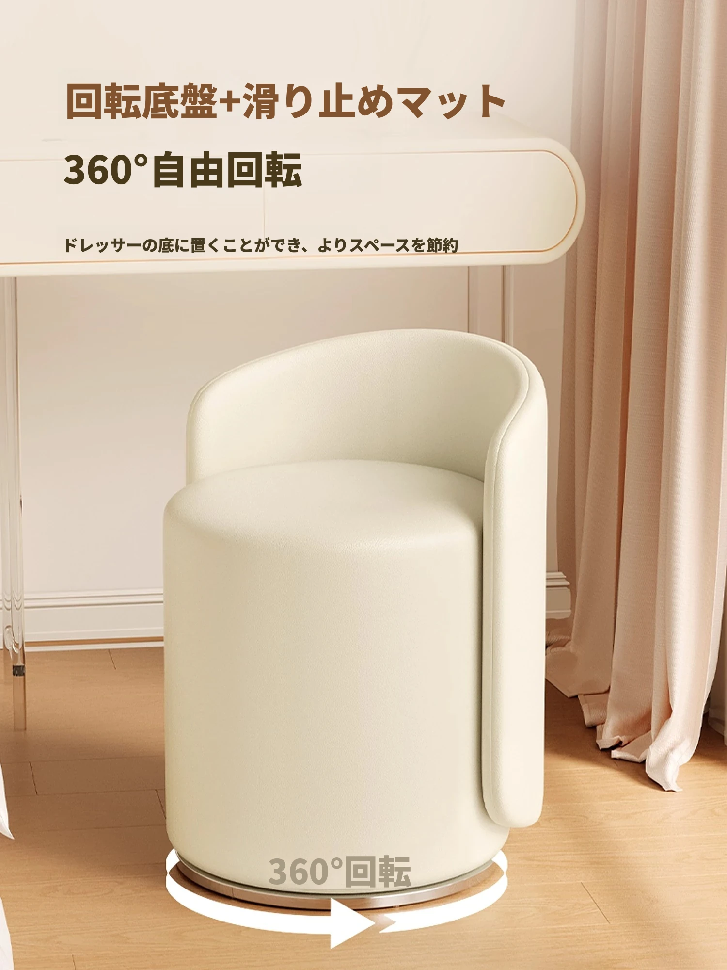 クリーム色のメイクアップチェア|高級感溢れる家庭用ドレッシングテーブル椅子|背もたれ付き|シンプルで回転&昇降可能|おしゃれな化粧台にぴったり!