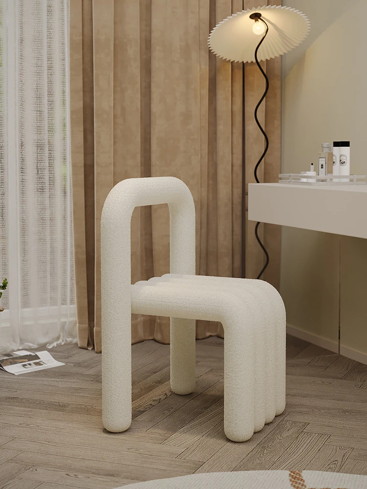 ラグジュアリーなデザインの化粧椅子!主寝室にぴったりのスタイリッシュな化粧台椅子。高級感あふれるラムウール素材使用、クリーミーな色合いのダイニングチェアとしても活躍。あなたの美しさを引き立てるアイテムです!