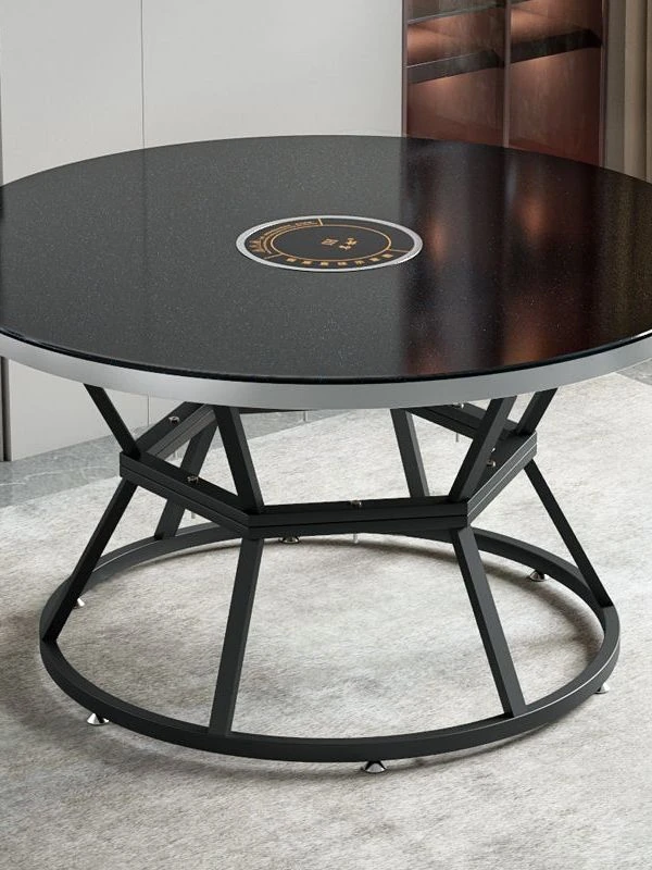 強化ガラスの火鍋用丸テーブル - 家庭用・電磁調理器対応!中華料理店やホテルにも最適な円形ダイニングテーブルと回転式テーブルセット。食事をもっと楽しく、スタイリッシュに!