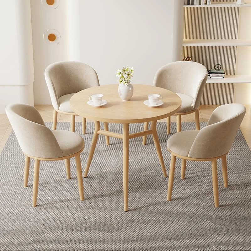 北欧スタイルのシンプルなサークルテーブル&チェアセット - 会議やカジュアルなひとときに最適!リラックスした雰囲気を演出し、トレーニング機関やバルコニーにもぴったりな小さなダイニングテーブル。