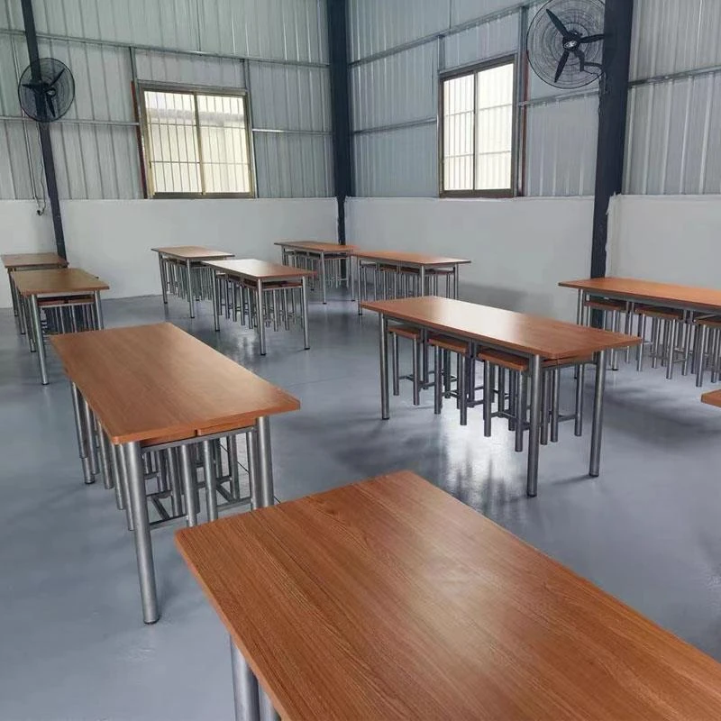 ステンレス製の社員食堂テーブル&チェア4人用|耐久性抜群でお手入れ簡単!工場やレストランに最適なスタイリッシュなデザイン。職場の食事時間をより快適に!