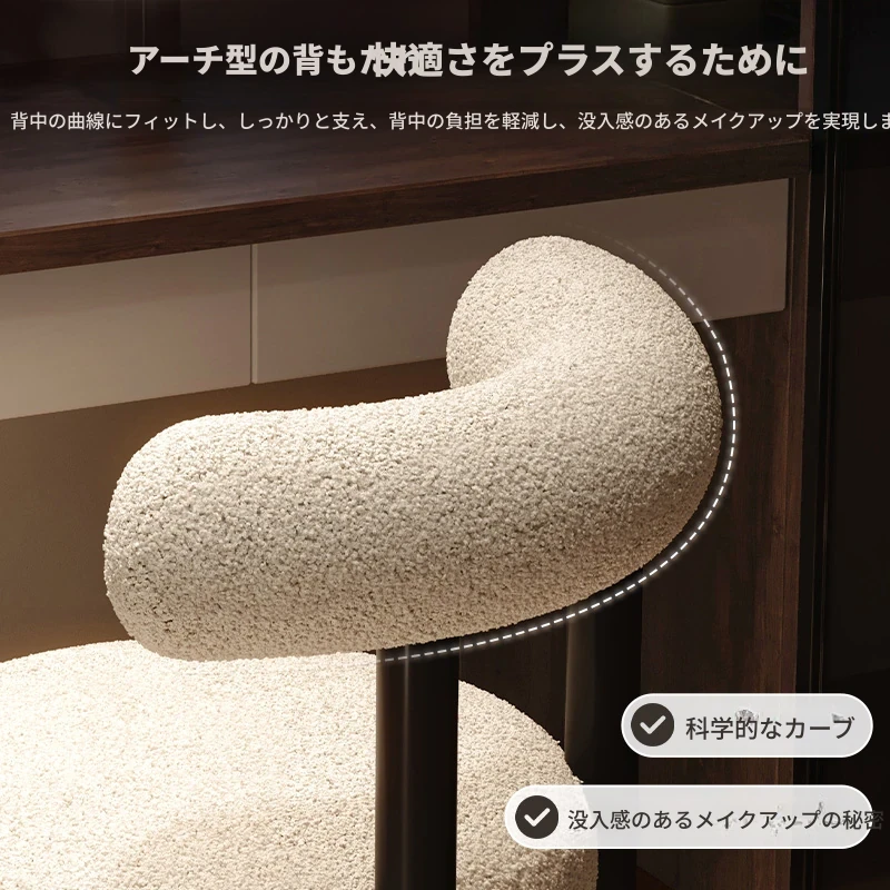 人気の高級ライトラグジュアリー化粧台椅子!女性の寝室にぴったりのモダンシンプルなデザイン。快適な背もたれ付き、柔らかなラムスキン素材で美しいネイルにも最適。魅力的なスタイルであなたのメイクアップ空間をアップグレード!