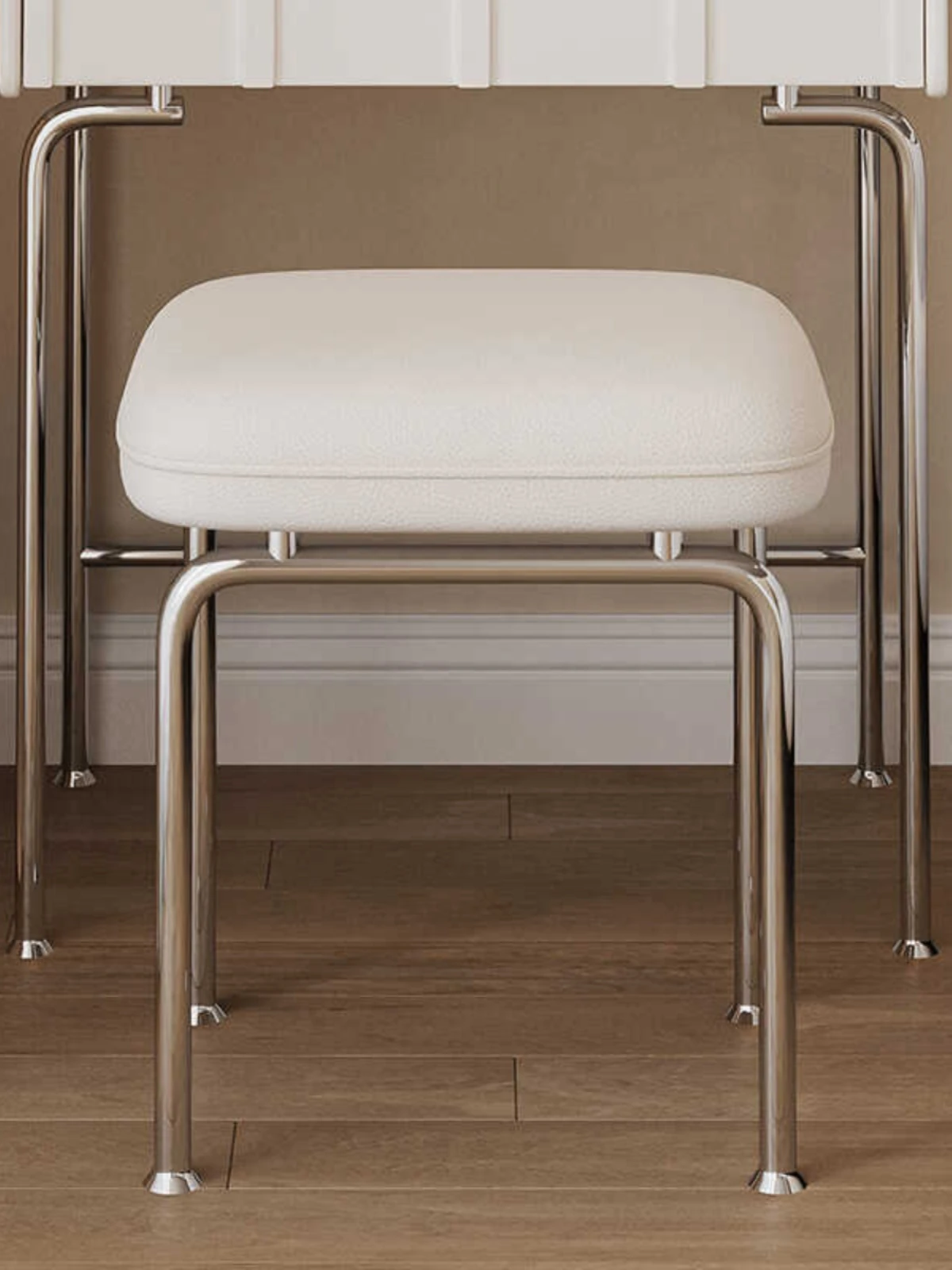 おしゃれなステンレス製の化粧台スツール - シンプルで洗練されたデザイン、北欧スタイルの美しさを引き立てる!自宅やホテル、ピアノの横にもぴったりな軽量で機能的なアイテム。あなたの寝室をスタイリッシュにアップグレード!