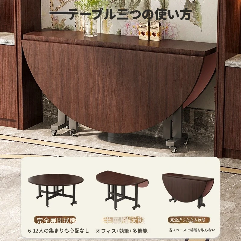 新中式折りたたみテーブル|ウォールナットカラーの大きな円形テーブル|小型スペース向け|多機能&簡単折りたたみ|移動も楽々|みんなで楽しい食事を!