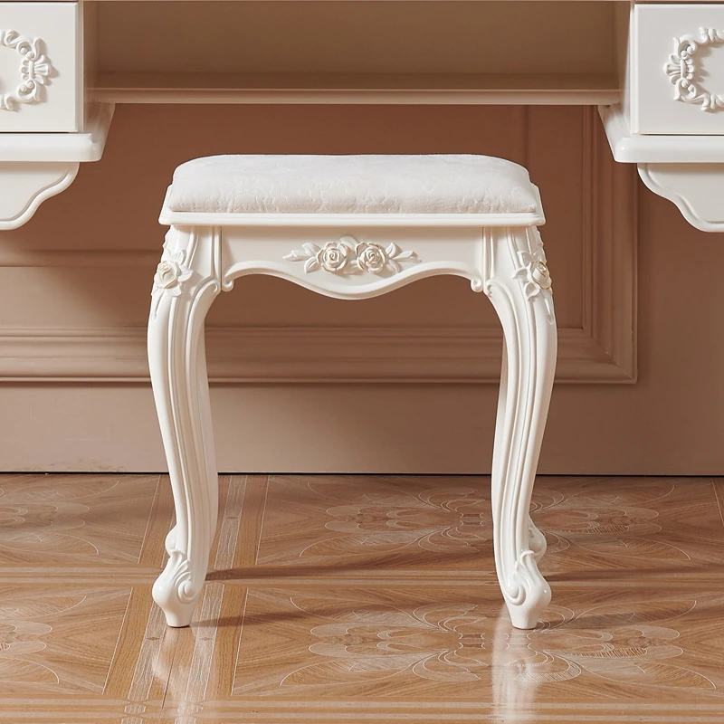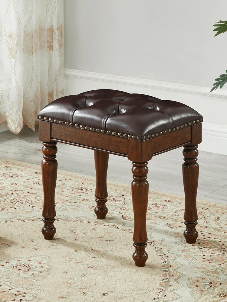 アメリカンスタイルの無垢材ドレッシングテーブル用ソフトパッドスツール - シンプルでエレガントな寝室にぴったりの化粧椅子。古筝やピアノにも最適な多用途デザイン!