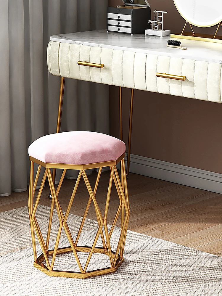 北欧風のモダンでシンプルな軽奢コスメスタンド用スツール - 女子の寝室にぴったり!おしゃれな円形デザインで、インスタ映え間違いなしの化粧台椅子!