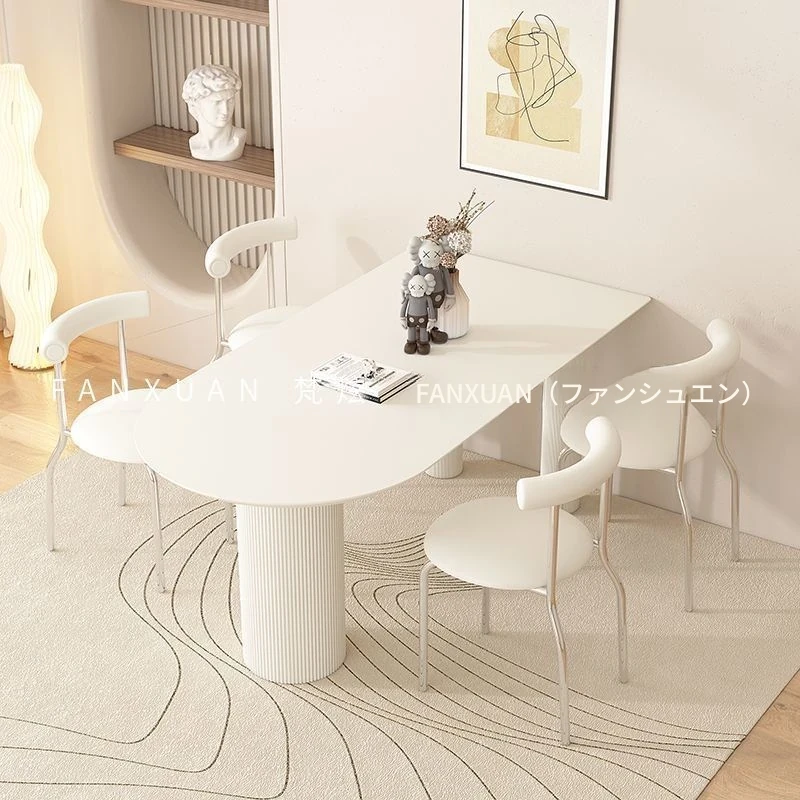 梵炫クリーム風ペニンシュラ岩板ダイニングテーブルセット - 北欧モダンでシンプルなデザイン、小型住宅に最適な食卓!おしゃれで機能的な食事空間を演出します。