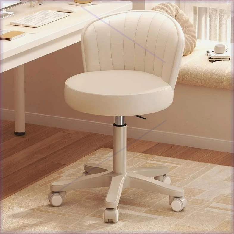 昇降式回転メイクアップスツール|クリーミーなデザインの化粧椅子|寝室や学習に最適|背もたれ付き|ネイル&美容に最適な快適な椅子!