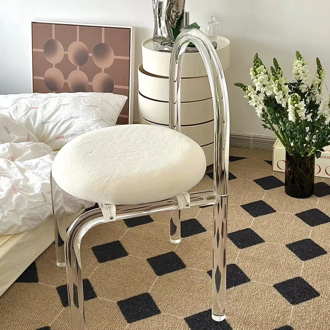 新作!高級感溢れるクリスタルスツール - アクリル透明メイクチェア、リビングやバルコニーにぴったりのスタイリッシュなドレッシングテーブル用チェア。おしゃれで快適な空間を演出します!