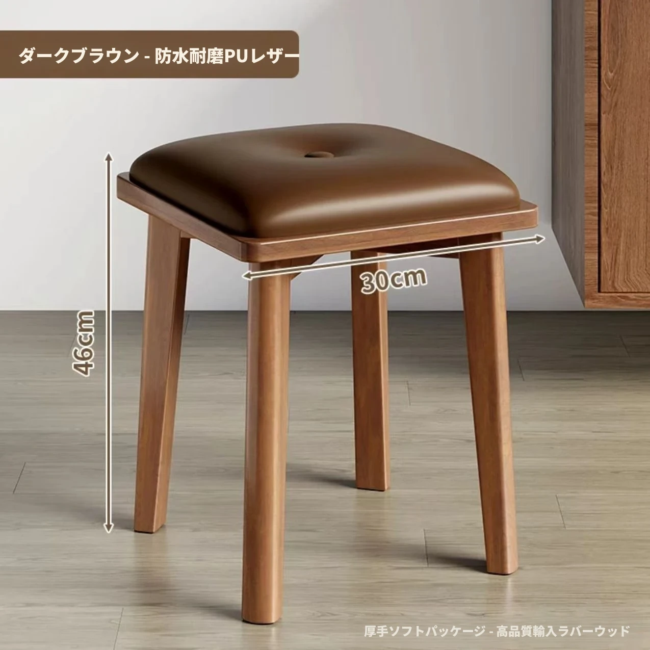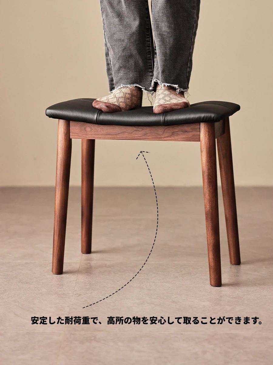 高級ブラックウォールナット製の無垢材スツール - 寝室や化粧台に最適!おしゃれなデザインで、学習やリビングにもぴったり。快適なレザー仕上げで、あなたの生活空間を一層魅力的に演出します。