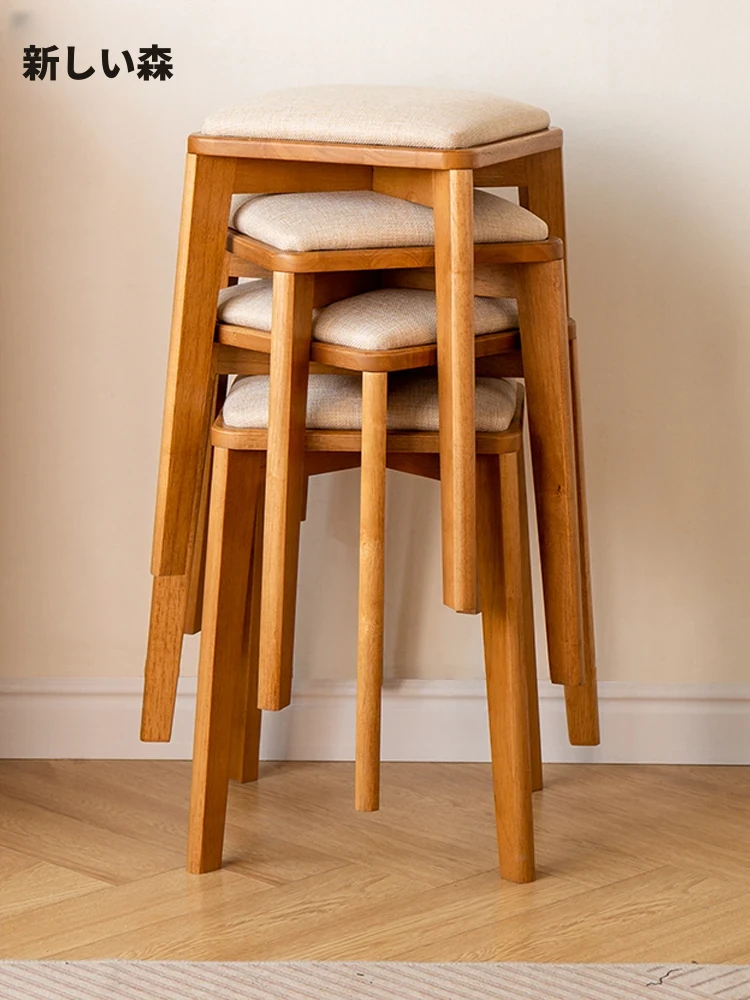天然木製のスタッキング椅子!シンプルでスタイリッシュなデザイン、家庭用にも最適。ソフトパッド付きで快適な座り心地。読書や化粧時にもぴったりな丸型・角型のベンチ、あなたの生活空間を彩ります!