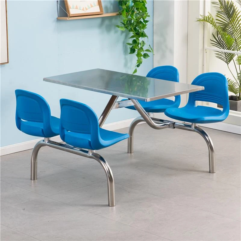 学校や食堂に最適!学生やスタッフに最適な4人、6人、8人用のコンパクトなステンレス製ファーストフードテーブル&チェアセット。耐久性抜群で、清掃も簡単!快適な食事空間を提供します。