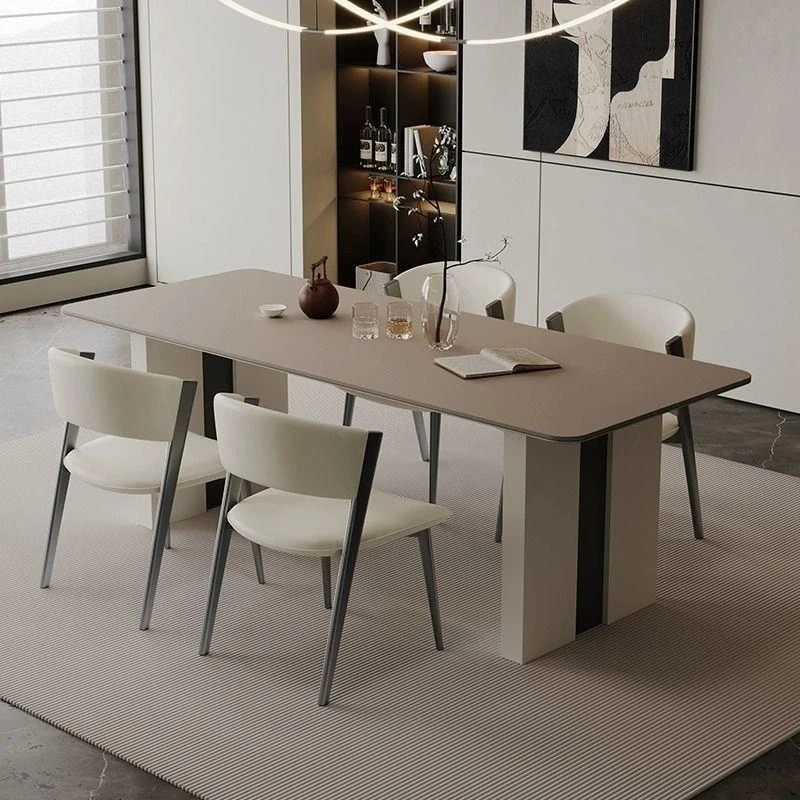 イタリアンミニマリズムのダイニングテーブルセット!小さなスペースに最適なモダンでシンプルな長方形の岩板テーブル。家族や友人との食事をスタイリッシュに楽しむための必需品!