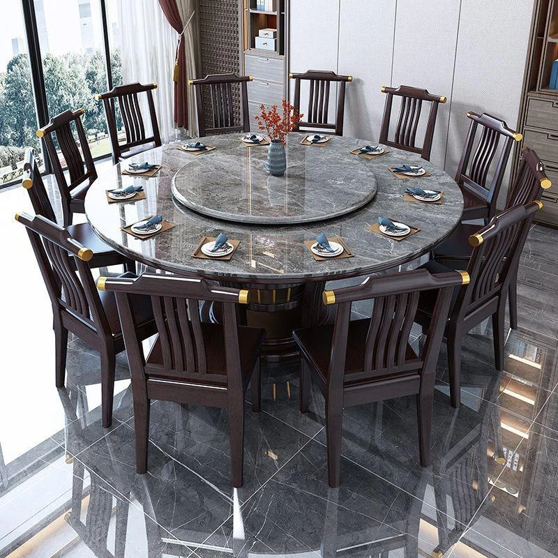 新中式スタイルの大理石製円形テーブルセット - 家庭用やホテルに最適な火鍋・ダイニング用ラウンドテーブル。美しいデザインで、おしゃれな食事の時間を演出します!