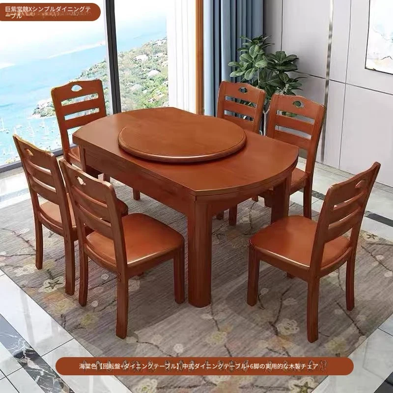 天然木製の折りたたみ式ダイニングテーブルセット - 四角形と円形の2WAYデザイン!狭いスペースにもぴったり。伸縮可能で、回転トレイ付きで便利。家族や友人との楽しいひとときを演出します!